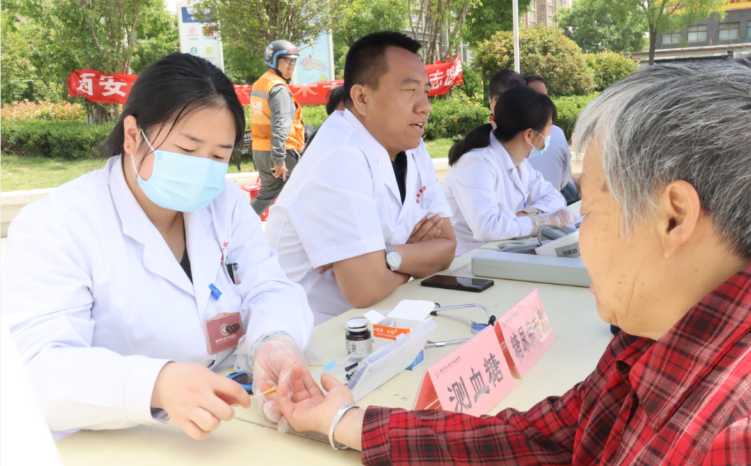 义诊现场,前来参加义诊的人员络绎不绝,问诊、把脉、查体等义诊工作有条不紊地进行着。内科、康复科等医务人员免费为前来的居民量血压、测血糖、仔细询问他们的身体状况,耐心解答各种疑问,详细了解他们的身体状况,并结合他们的身体情况仔细为他们讲解卫生保健知识、注意事项、饮食安全、合理用药等卫生常识,帮助他们树立健康理念,提升健康意识。