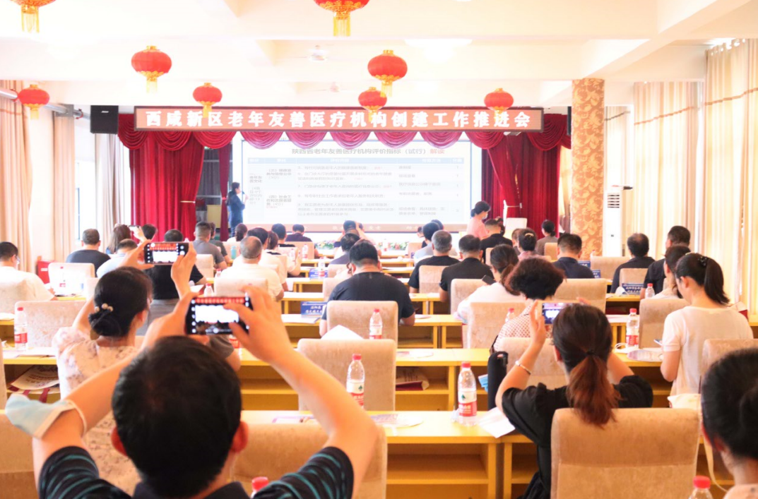为推进西咸新区老年健康服务体系建设,优化老年人就医环境和就医流程,为老年患者提供全方位、全周期的诊疗服务,全面推进西咸新区老年友善医疗机构创建工作,由西咸新区社会事业服务局主办、西安秋兰中医医院承办的西咸新区老年友善医疗机构创建工作推进会于2022年8月4日上午在西安秋兰中医医院举办。辖区30家医疗机构的主要领导、负责同志约70人参加了会议。