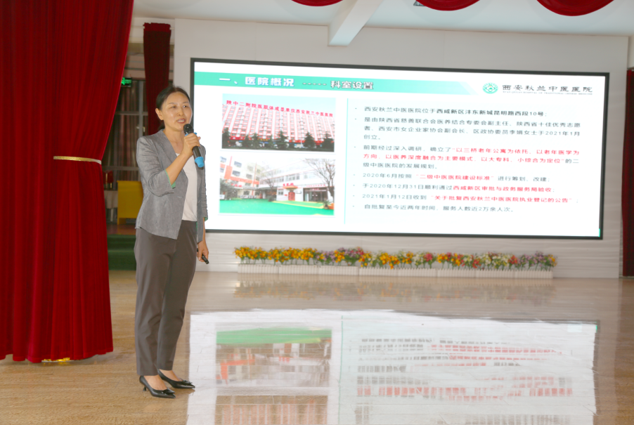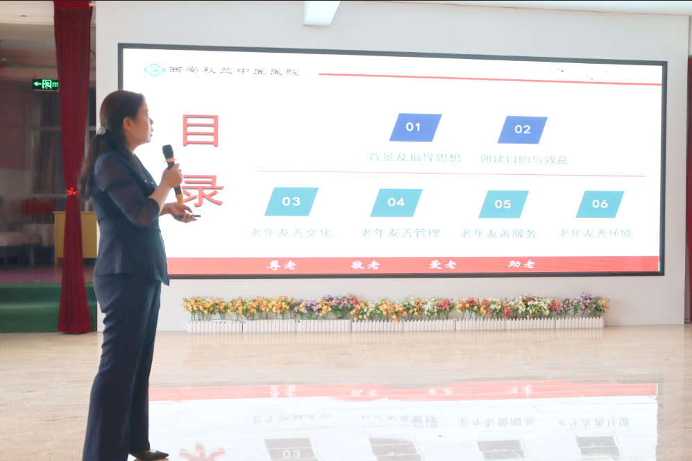 会议共四项议程,一是西咸新区社会事业服务局副局长张攀为就创建工作提出要求;二是西安秋兰中医医院医务科主任杨改梅解读《陕西省老年友善医疗机构评价指标》;三是西安秋兰中医医院副院长姜淑玲分享老年友善医疗机构创建工作经验;四是实地参观学习并交流经验。