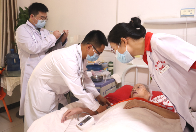 对于行动不便、长期卧床的老人,医护人员在老年公寓工作人员的陪同下,到老人房间在床旁认真询问老人的身体情况。进行了床旁诊疗,仔细的查看了老人的生命体征并向护理员详细了解了老人平时的情况。对老人的血压及身体状况进行记录。对需要进一步检查和治疗的老人提出指导意见。